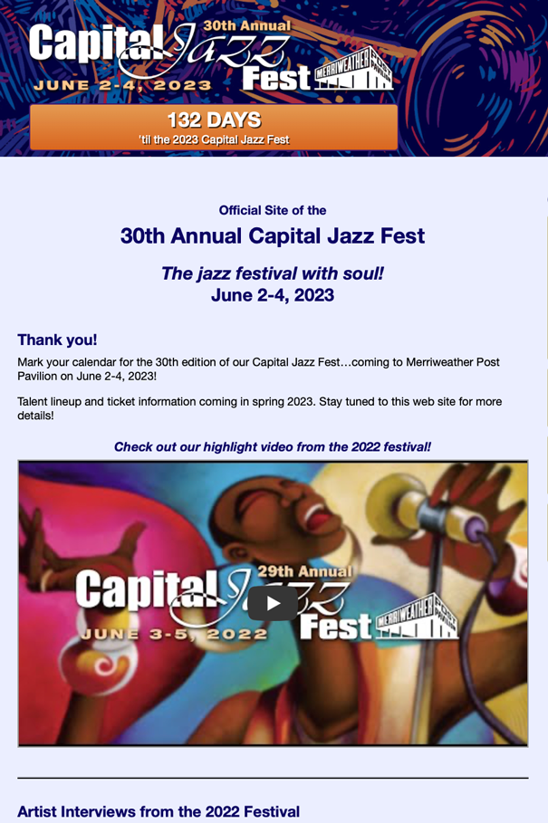 Capital Jazz Fest is an annual jazz music festival held in Washington DC. It is an outdoor festival that was started in 1993.